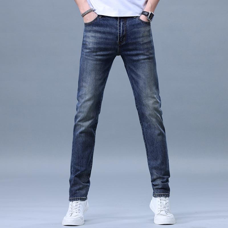 メンズ ファッション 服 男性用 オシャレ シンプル 大人 かっこいい 大きいサイズ ストリート 紳士服 ハイエンド ライト ブルー ジーンズ 夏 薄手 レトロ スリムフィット カジュアル パンツ