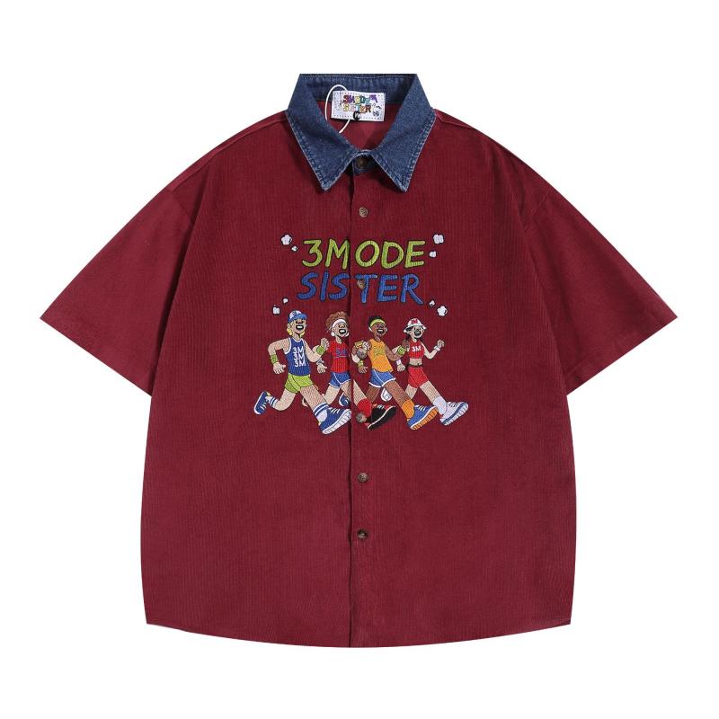 シャツ メンズ レディース スポーツ 刺繍 コーデュロイ アメカジ カレッジ風 カップル ペア ユニセックス 通気性 コットン アウター ベージュ レッド 春夏
