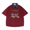 ・カテゴリ: シャツ・スタイル: 和風レトロ・主な素材: 綿91-95%・ネックライン: スクエアネック・袖丈: 半袖・柄: キャラクター・シルエット: ゆったり・デザイン: 刺繡・加工: ノンアイロン・シーン: カジュアル・対象: 大人・性別: 男性・カラー展開: アプリコット、レッド・サイズ展開: M、L、XL