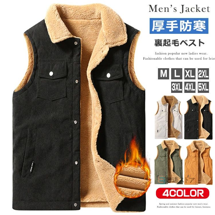 ワーク 裏暖起毛ベスト 防寒 作業着 メンズ 釣り あったか 裏起毛 冬 ベスト コーデュロイ アウトドア 防寒 ボアベスト 裏ボア