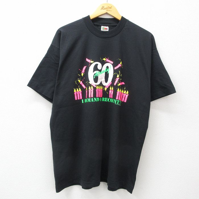 【中古】古着 フルーツオブザルーム 半袖 ビンテージ ヴィンテージTシャツ メンズ 90年代 90s ロウソク 大きいサイズ 2L LL ビッグシルエット ゆったり ビッグサイズ オーバーサイズ クルーネック 丸首 黒 ブラック XLサイズ 中古 | 春夏 夏物 夏服 ヴィンテ 5OF