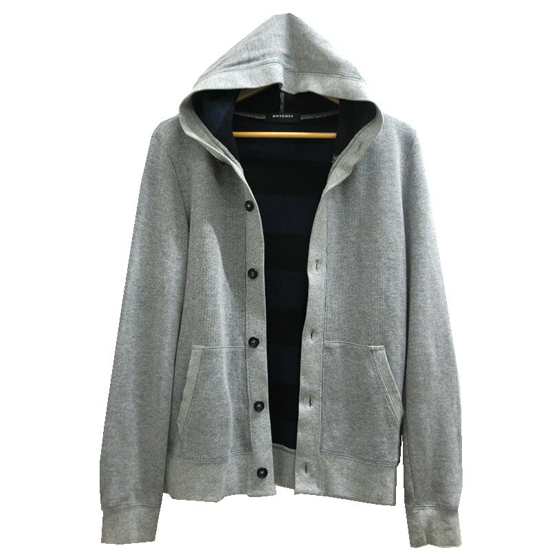 ボイコット BOYCOTT メンズ カーディガン フード付き グレー 内側ブラック ネイビー ストライプ柄 本体/コットン綿91% ポリエステル9%リブ部分/コットン綿96% ポリウレタン4% 中古ABランク