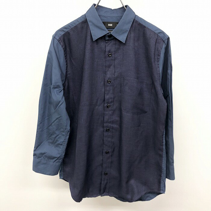 【楽天スーパーSALE限定!! \★半額★/対象商品|12月4日(木)20時00分〜12月11日(木)01時59分まで】【中古】HARE ハレ S メンズ シャツ 無地 切り返し生地 7分袖 レギュラーカラー 胸ポケット 日本製 [本体:綿100% / 前身頃:ポリ100%] ネイビー 紺