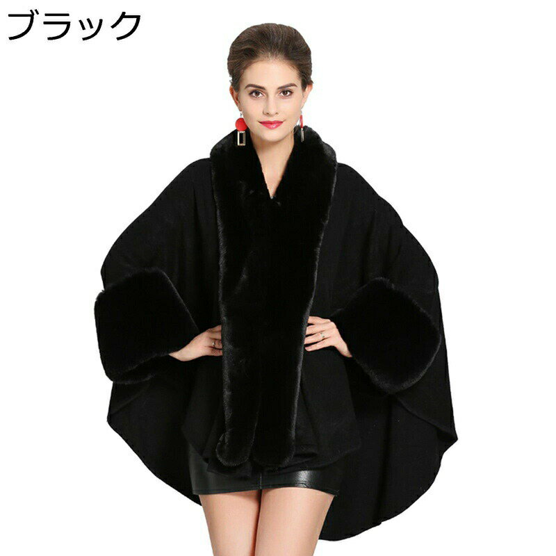 レディース フェイクファー ファーコート 毛皮コート ケープポンチョ ケープ マント ストールショール 肩掛け アウター 無地 体型カバー 防寒ウェア 優雅 暖か 通勤 宴会 結婚式 フォーマル