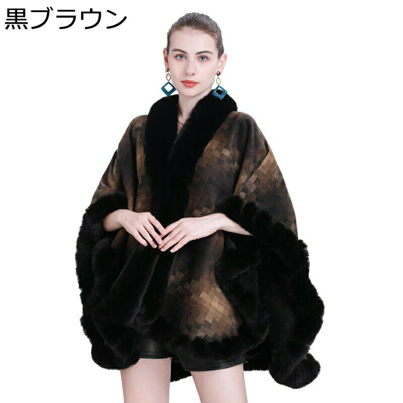 レディース ポンチョコート ファーコート チェック柄 毛皮コート 毛皮ショール ニット肩掛け マント ショール ストール 体型カバー きれいめ ふわふわ ゆったり 通勤 冬 無地 サボ 保温 防寒