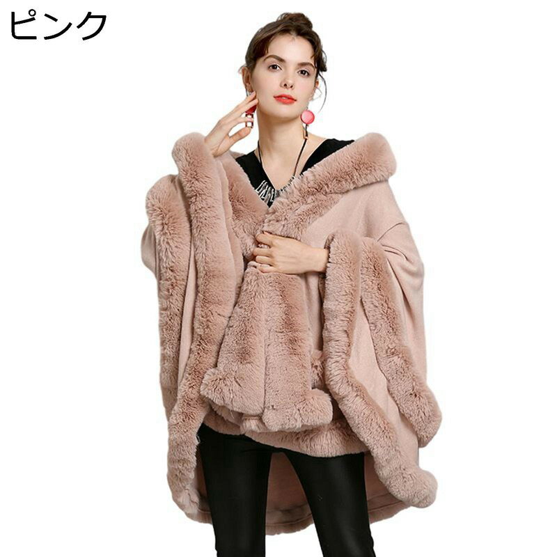 レディース ポンチョ コート ファージャケット 毛皮コート ケープコート フード付き 無地 ストールショール フェイクファー マントコート アウター 秋冬 体型カバー ゆったり 防寒ウェア