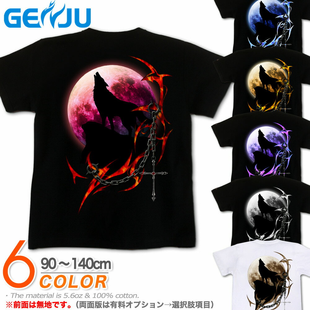GENJU ウルフTシャツ キッズ 21春夏 トライバル 狼 ウルフ ロック系 オオカミ アニマル ストリート系 アメカジ 月 半袖 子供服 KIDS ブランド tシャツ ティーシャツ SolitaryPlanet ブラック 黒 ホワイト 白 90-140cm