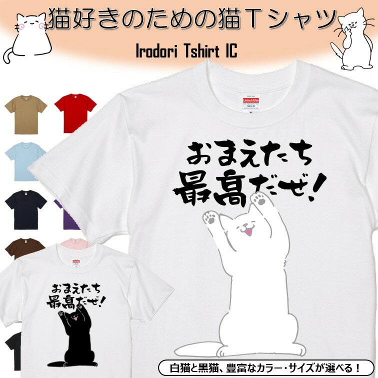 【長袖・ドライ有】 おもしろ猫tシャツ 【おまえたち最高だぜ!(しょかき)】 おもしろ tシャツ 選べる イラスト 動物 猫 ねこ cat にゃんこ ネタ 文字 ネコ かわいい ゆるキャラ キッズ 子供 大人 ギフト プレゼント 名言 ウケ狙い 部屋着