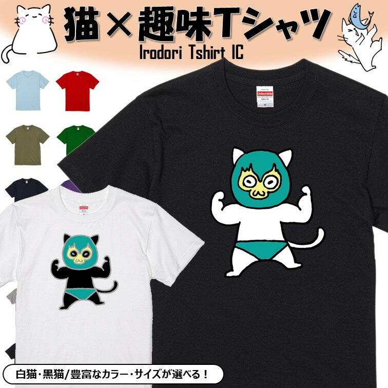 【長袖・ドライ有】 おもしろ趣味猫tシャツ 【プロレス猫】 おもしろ tシャツ 選べる イラスト 動物 猫 ねこ cat にゃんこ ネタ 文字 ネコ かわいい ゆるキャラ キッズ 子供 大人 ギフト プレゼント 名言 ウケ狙い 誕生日 白猫 黒猫 部屋着