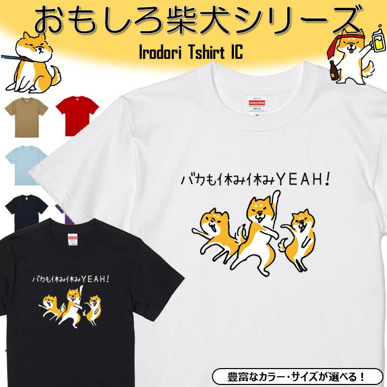 【長袖・ドライ有】 おもしろ柴犬Tシャツ 【 バカも休み休みYEAH! 】 おもしろ tシャツ 犬 柴犬 動物 ペット アニマル ゆるい かわいい 部屋着 寝間着 キッズ 子供 ネタ 文字 イラスト デザイン メンズ レディース ギフト プレゼント 贈り物 ウケ狙い 誕生日 記念日