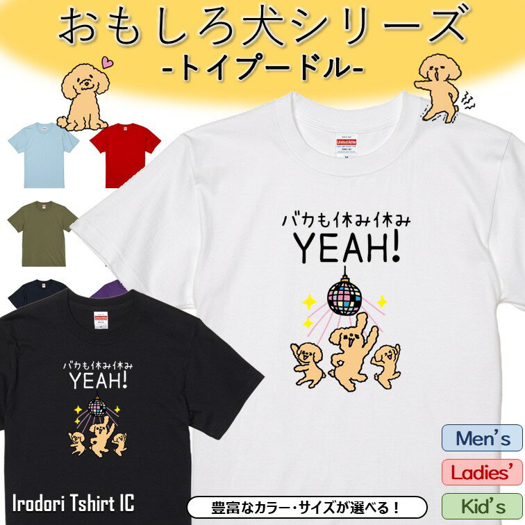 【長袖・ドライ有】 おもしろトイプードルTシャツ 【 バカも休み休みYEAH! 】 おもしろ tシャツ 犬 トイプードル 動物 ペット アニマル ゆるい かわいい 部屋着 寝間着 キッズ 子供 ネタ 文字 イラスト メンズ レディース ギフト プレゼント