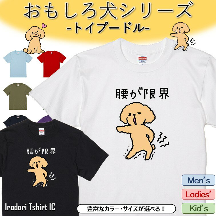 【長袖・ドライ有】 おもしろトイプードルTシャツ 【 腰が限界 】 おもしろ tシャツ 犬 トイプードル 動物 ペット アニマル ゆるい かわいい 部屋着 寝間着 キッズ 子供 ネタ 文字 イラスト デザイン メンズ レディース ギフト プレゼント