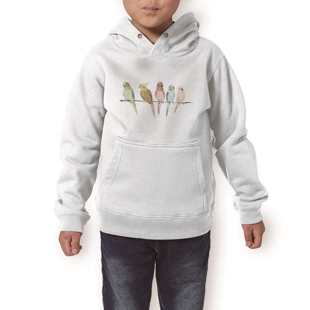 パーカー キッズ ホワイト グレー ブラック デザイン 110 130 150 parker hooded sweatshirt フーディ 白 黒 灰色 子供 男の子 女の子 014042 鳥 インコ アニマル