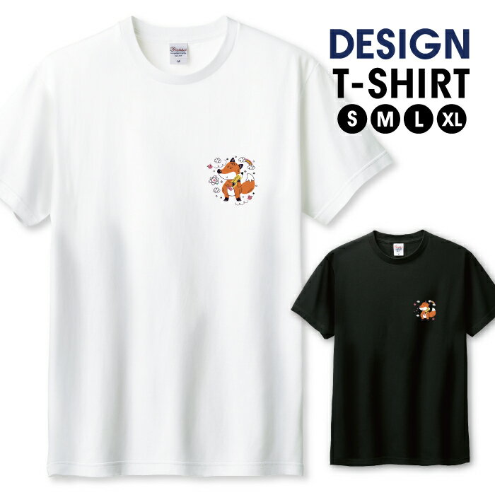 Tシャツ メンズ ユニセックス きつね キツネ 狐 動物 子供 ピクニック 北欧 イラスト おしゃれ かわいい 絵本 サイズ S M L LL XL 半袖 綿 100% コットン 人気 ゆったり 白Tシャツ 黒Tシャツ ホワイト ブラック 長持ち プリントtシャツ デザイン よれない 透けない