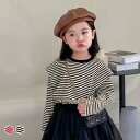 長袖 Tシャツ 女児 ボーダー柄 カットソー 女の子 長袖Tシャツ ゆったり 秋 トップス ボーダー柄Tシャツ レイヤード クルーネック
