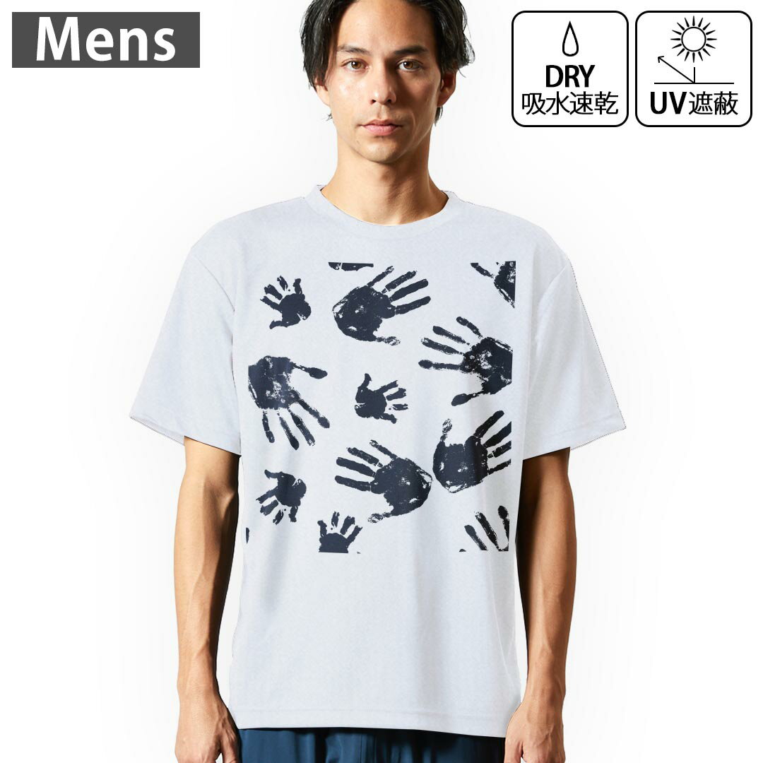 メンズ ドライTシャツ ホワイト 半袖 4.1オンス ジム トレーニング スポーツ 運動会 ドライアスレチック UVカット 紫外線遮蔽 吸水速乾 デザイン Tshirt S M L XL 2XL 3XL 4XL 5XL 6XL 015781 手形 おばけ 白黒