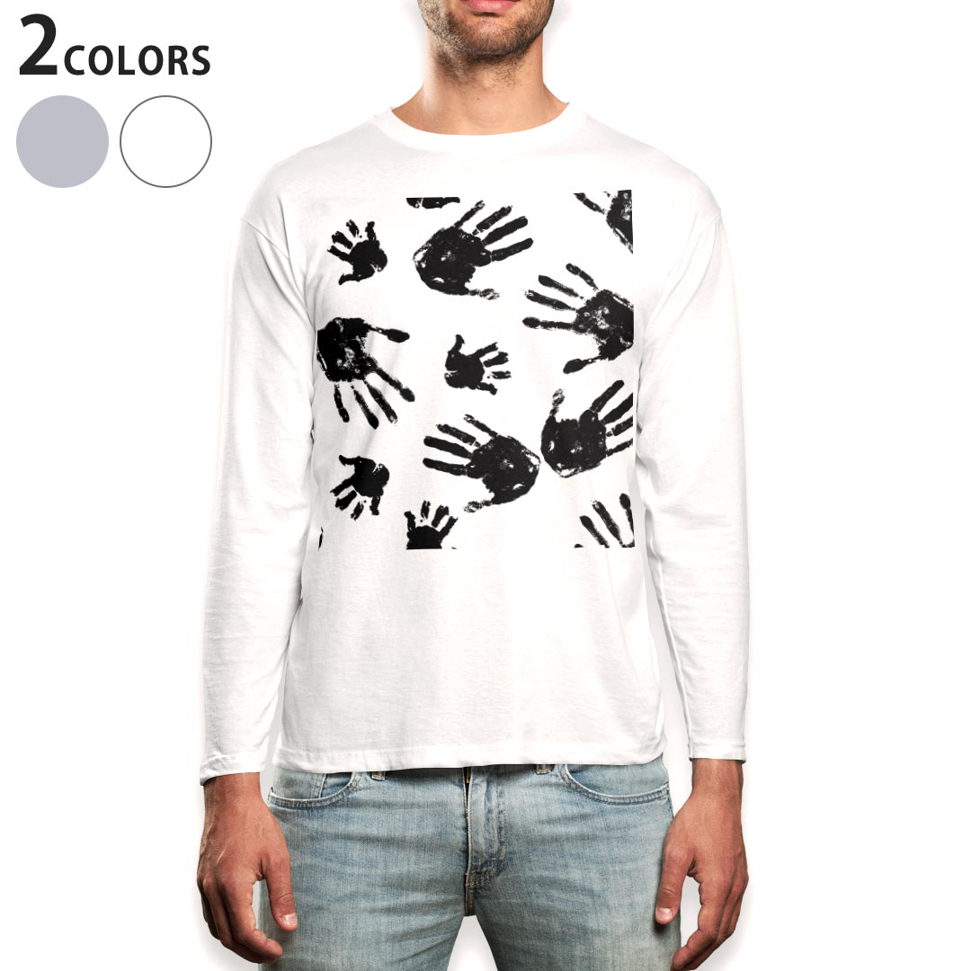 ロング tシャツ メンズ 長袖 ホワイト グレー デザイン XS S M L XL 2XL Tシャツ ティーシャツ T shirt long sleeve 003630 手形 カラフル シンプル