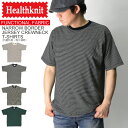 ★期間限定!最大20%OFFクーポン対象商品★【送料無料】Healthknit(ヘルスニット) 【ファンクショナル ファブリック】ボーダー クルーネック Tシャツ 抗菌防臭・吸汗速乾 メンズ レディース プレゼント