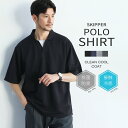 ポロシャツ トップス メンズ 夏 夏服 半袖 5分袖 スキッパー ルーズシルエット ゆったり ダブルフェイス 抗菌 防臭 接触冷感 鹿の子 無地 ブラック グレー ホワイト ネイビー S M L XL