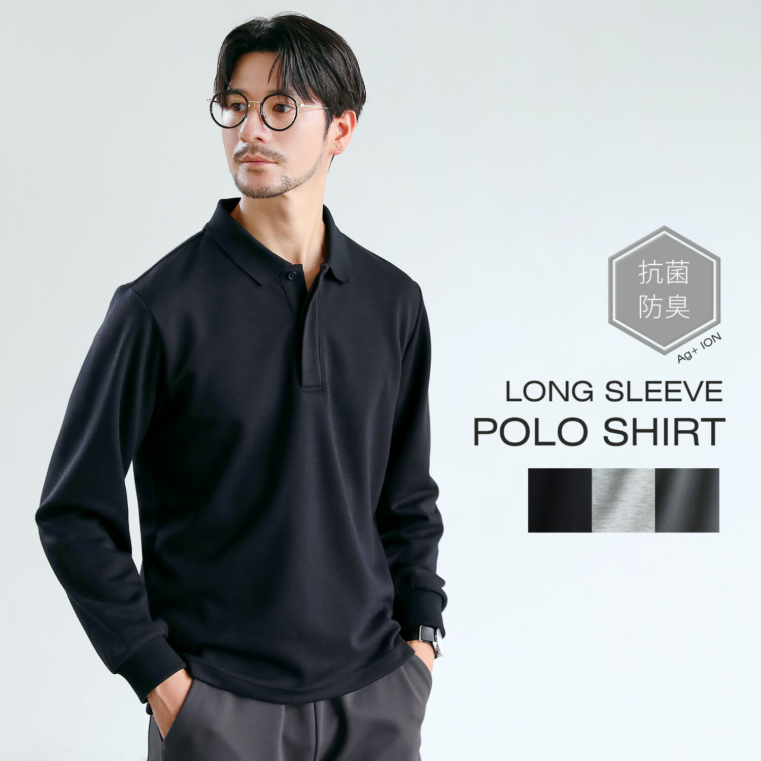 〓予約販売・一部2月上旬頃発送予定〓 ポロシャツ メンズ 秋 秋服 長袖 鹿の子 抗菌 防臭 機能性 ハーフボタン 比翼 ポリエステル 重ね着 袖リブ 無地 杢 ブラック チャコール 杢グレー ライトグレー M L XL