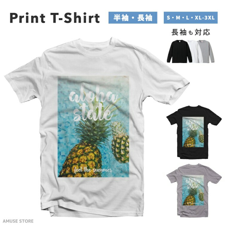 Tシャツ メンズ 半袖 長袖 おしゃれ プリント 綿100% 大きいサイズ 小さいサイズ レディース コットン ブラック ホワイト グレー カジュアル ファッション 5.6オンス 白Tシャツ 黒Tシャツ 推し かわいい ALOHA STATE Pineapple パイナップル FruiT