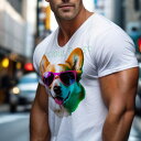 Tシャツ メンズ キッズ 犬ファン 半袖 春夏 プリント カジュアル かわいい 人間用 フィットネス マッチョ サングラス コーギー カラフル 可愛い ファンキー おしゃれ