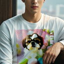 Tシャツ メンズ キッズ 犬ファン 半袖 春夏 犬柄 プリント カジュアル かわいい 人間用 フィットネス ダンス イースターエッグ シーズー ピンクの背景 可愛い カラフル パステルカラー