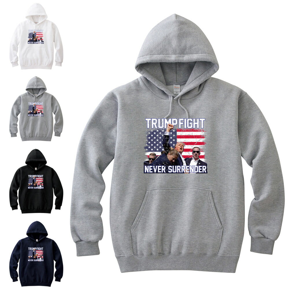 ドナルド・トランプ パーカー TRUMP FIGHT NEVER SURRENDER ドナルド トランプ 大統領選挙 暗殺未遂 銃撃 大統領候補 トランプ米国大統領 選挙運動 ジョー バイデン バイデン大統領 共和党 民主党 アメリカ USA メッセージ パーカ メンズ レディース 大きいサイズ 父の日