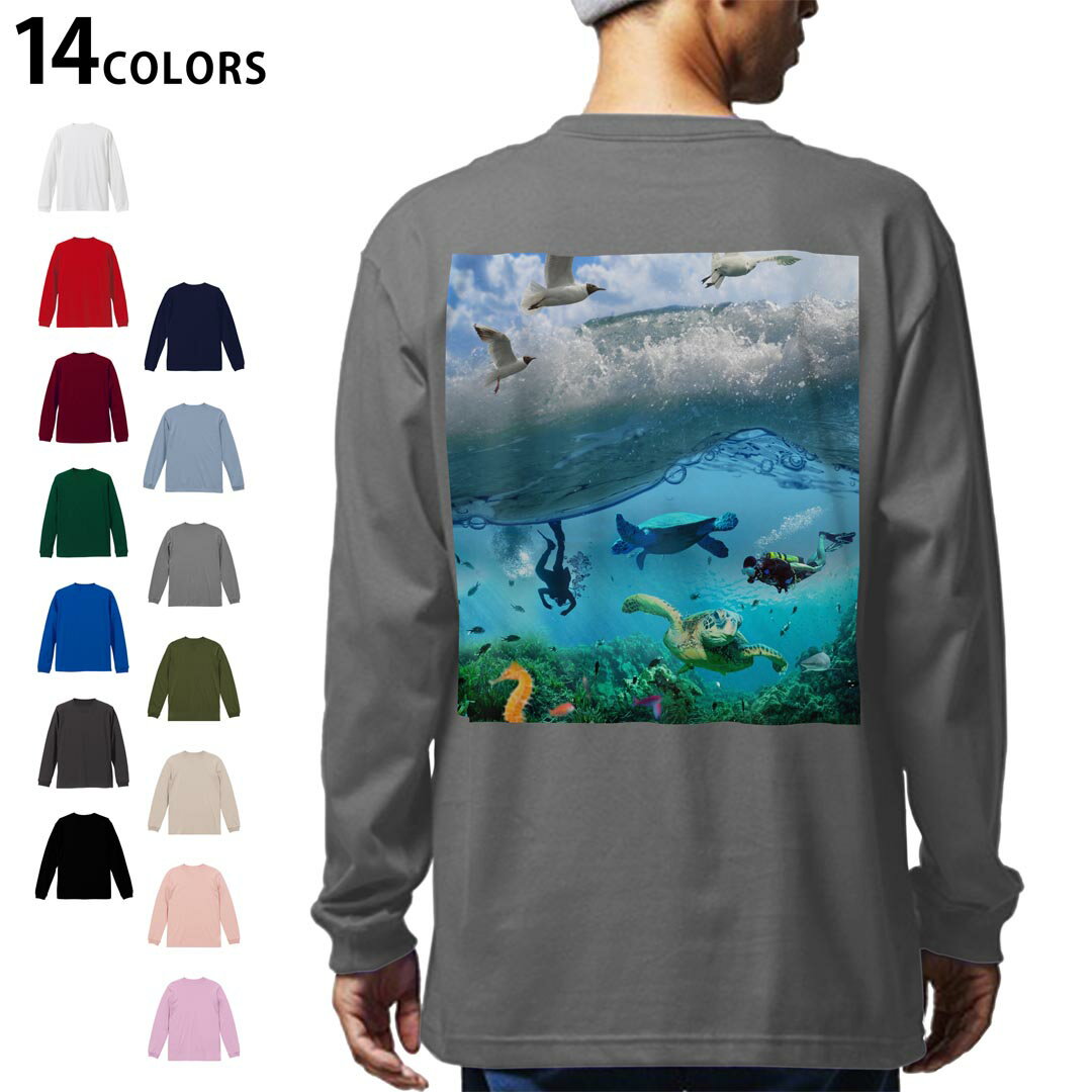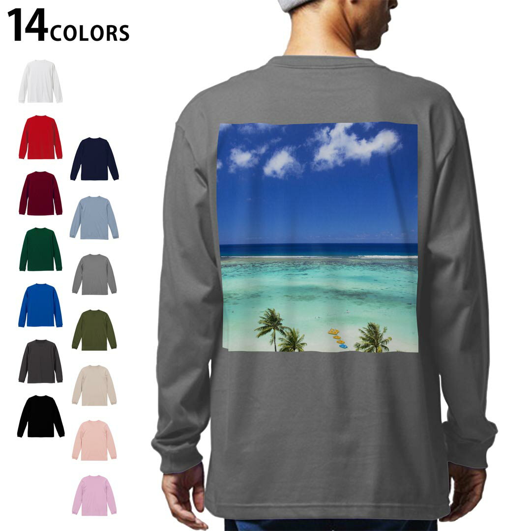選べる14カラー バックプリント メンズ レディース ユニセックス unisex 長袖 デザイン XS S M L XL 2XL Tシャツ ロング ティーシャツ T shirt 010460 海 空 写真