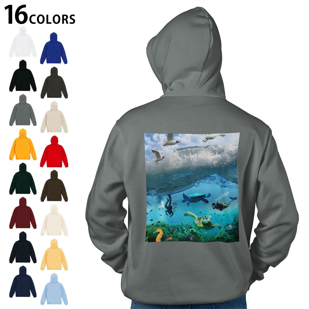 選べる16カラープルオーバー パーカー バックプリント フーディ メンズ レディース ユニセックス 長袖 デザイン S M L XL 2XL hoodie 010460 海 空 写真