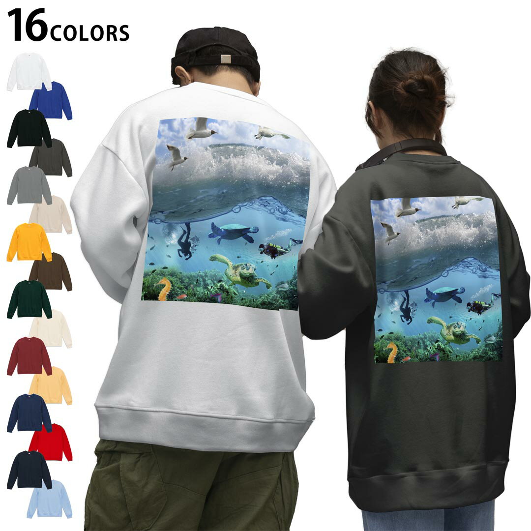 選べる16カラートレーナーバックプリント メンズ レディース ユニセックス 長袖 ホワイト グレー ブラック デザイン S M L XL 2XL sweatshirt trainer スウェット 003379 海 空 写真