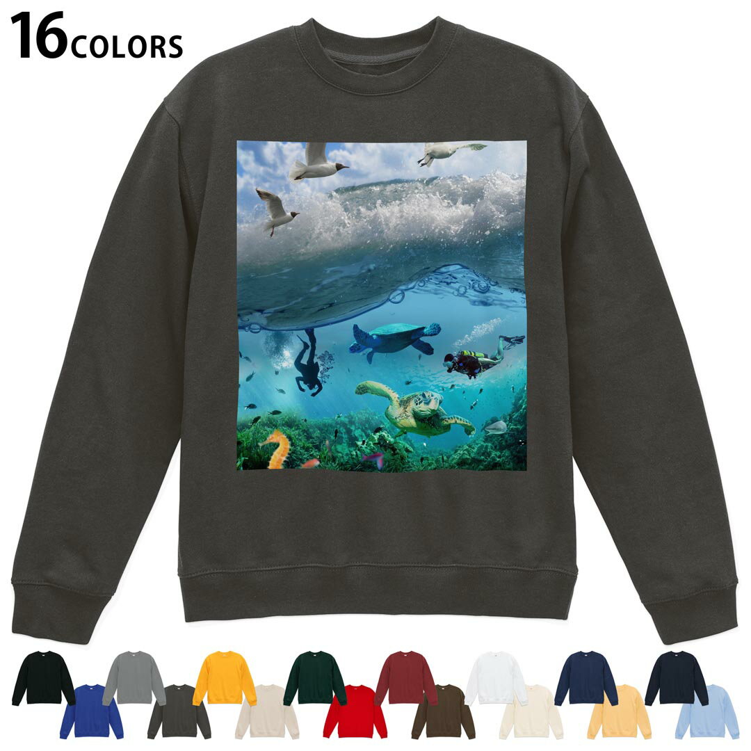 選べる16カラートレーナー メンズ レディース ユニセックス 長袖 デザイン S M L XL 2XL sweatshirt trainer スウェット 010460 海 空 写真