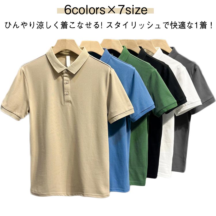 6colors×7sizeひんやり涼しく着こなせる! スタイリッシュで快適な1着!吸汗速乾・通気性に優れた生地を使用したため、汗を素早く吸収し乾燥し、蒸れ等の不快感を抑え、いつでもサラサラな着心地をキーブできます。ストレッチが効いてるため、ストレスがなく動けます。 サイズ M L XL 2XL 3XL 4XL 5XL サイズについての説明 ※サイズ表の実寸法は商品によって1-3cm程度の誤差がある場合がございます。 素材 ポリエステル 色 ベージュ ホワイト グレー ブラック グリーン ブルー 備考 ●サイズ詳細等の測り方はスタッフ間で統一、徹底はしておりますが、実寸は商品によって若干の誤差(1cm〜3cm )がある場合がございますので、予めご了承ください。 ●商品の色は、撮影時の光や、お客様のモニターの色具合などにより、実際の商品と異なる場合がございます。あらかじめ、ご了承ください。 ●製品によっては、生地の特性上、洗濯時に縮む場合がございますので洗濯時はご注意下さいませ。 ▼色味の強い製品によっては他の衣類などに色移りする場合もございますので、速やかに(脱水、乾燥等)するようにお願いいたします。 ▼生地によっては摩擦や汗、雨などで濡れた時は、他の製品に移染する恐れがございますので、着用の際はご注意下さい。 ▼生地の特性上、やや匂いが強く感じられるものもございます。数日のご使用や陰干しなどで気になる匂いはほとんど感じられなくなります。