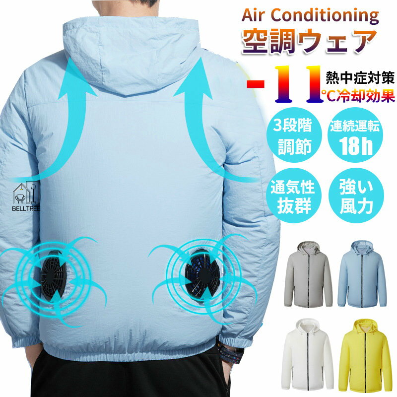 空調ファン 空調ベスト 長袖 薄手 空調ウェア 空調作業服 男女兼用 フード付き ジャケット パーカー 冷却ファン クールウェア 作業着 作業服 扇風機付き 冷却服 ワークウェア フルセット おしゃれ シンプル 熱中症対策 最大18H稼動可能 大風量 薄型 UVカット -11°C冷却効果