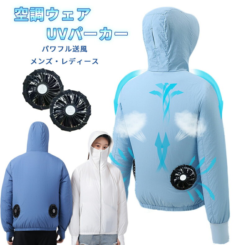 ファン付きジャケット空調ジャケット 空調ウェア 長袖日焼け止めクールダウンウェアファン付きパーカークールダウンパーカー3段階風量調節可 USB給電 熱中症対策 男女兼用 アウトウェア屋外 外仕事 農作業 釣り(バッテリー別売り)