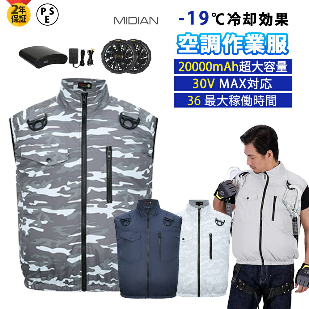 MIDIAN 空調作業服 ベスト ファン付き作業服 工場内 野外 農作業 運送 建築業界 25000mAhバッテリー 大容量バッテリー 涼しい 速乾 涼しい 熱中症対策 工事現場 建設業 農作業 スポーツ ゴルフ 釣り アウトドア