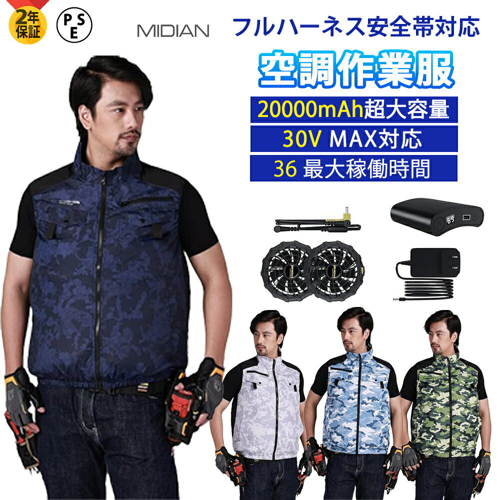 MIDIAN 空調作業服 ベスト 作業着 作業服 涼しい 20000mAh 最大36時間稼動 大風量 薄型 夏 熱中症対策 空調扇風服 スポーツ 男女兼用 メンズ レディース 熱中症対策 空調作業服 空調作業着 空調扇風服 おすすめ ペルチェベスト