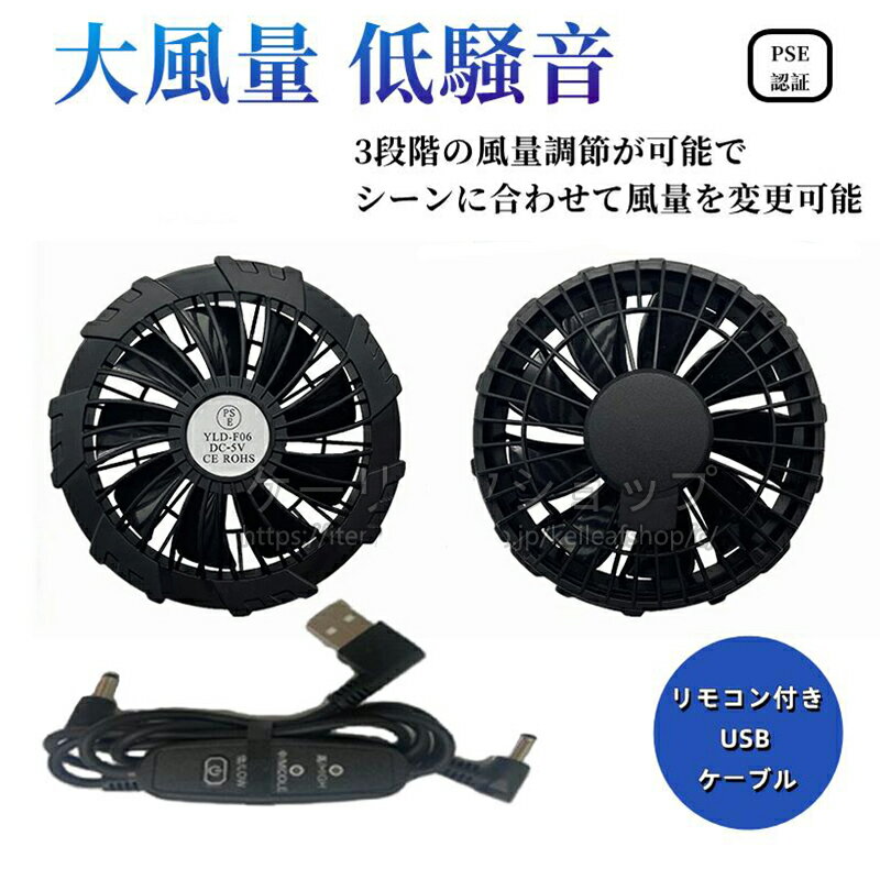 【翌日配達】快適作業服 ファン 日本製ブラシレスモーター 日本製作業服 応用する ファンのみ冷却ベスト ファン 2個大風量 軽量 静音 薄型 作業服ベスト用ファン 3段階風量調節可能 -7°C冷却効果 熱中症対策 交換用リモコンUSBケーブル 5V 倉庫 通勤 釣り【 180日製品保証】