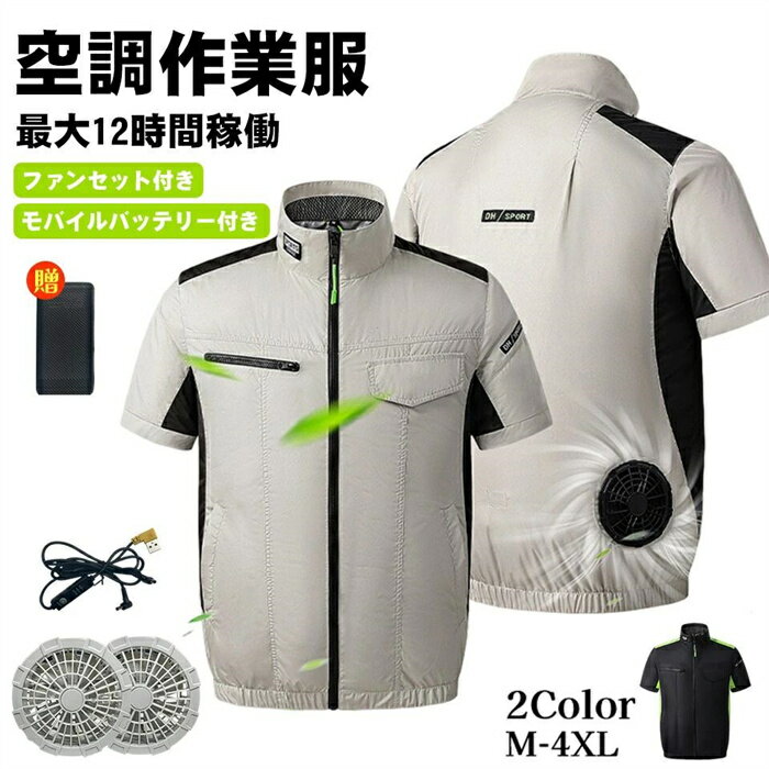 ファン&バッテリー付き作業着 空調作業服 ファン バッテリーセット ベスト PSE認証 10000mahバッテリー付属 ファン2個付き 3段階風量調節可能 熱中症対策 日焼け防止 涼しい 空調ウエア エアコン服 ワークウェア 長時間稼働