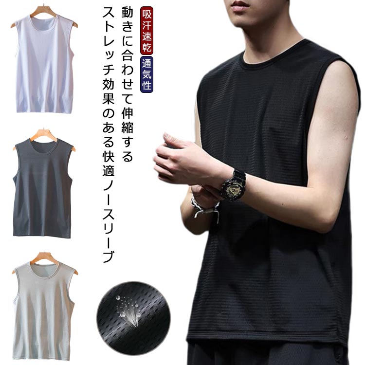 ノースリーブ メンズ 吸汗速乾 なめらか 冷感 ストレッチ 夏 肌着 トップス 大きいサイズ ベスト 接触冷感 爽やか タンクトップ 夏用 熱中症対策 ロードバイク メッシュ 吸汗性 通気性 薄手 インナー 自転車専用用 スポーツ 送料無料
