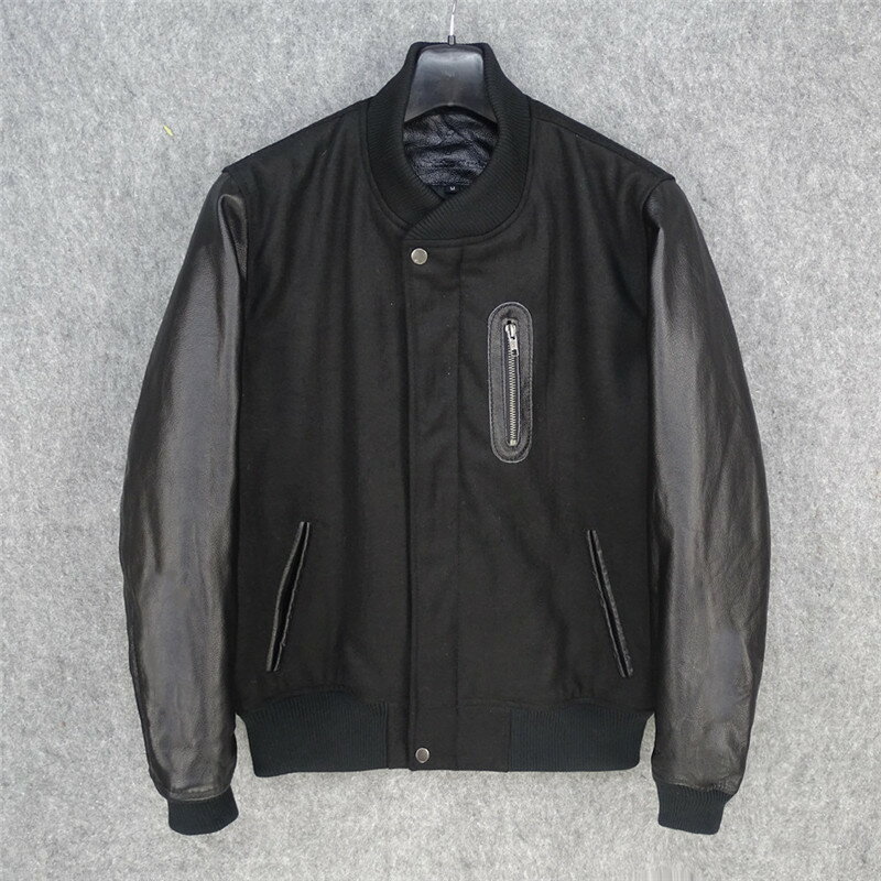 レザージャケット 上品 ウール切り替え 本革 牛革 暖かい中綿 ライダースジャケット 革ジャン S~6XL 黒
