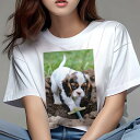 キャバリア Tシャツ レディース 犬ファン 半袖 春夏 犬柄 プリント カジュアル かわいい 人間用 個性派 ここだけのデザイン 面白 土 キャバリア 庭 玩具