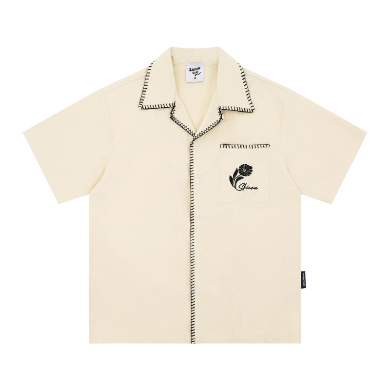 ・カテゴリ: シャツ・素材: 綿100%・スタイル: アメリカンレトロ・タイプ: カーディガン・シルエット: ルーズ・襟の形: 襟付き・袖丈: 半袖・柄: 花柄・厚さ: 普通・対象: ティーン・対象: 成人・対象: 男性・色: ブラック、杏色・サイズ: M、L、XL、XXL・洗濯: 洗濯機洗い可・製法: 刺繍