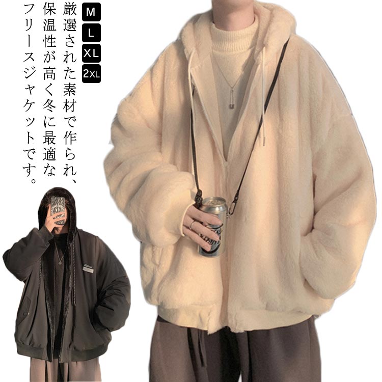 2way ゆったり ボア ジャケット コート ビッグシルエット パーカー フード ジャンパー アウター メンズ レディース ユニセックス 男女兼用 秋冬 冬 衣装 カジュアル 大きいサイズ ペアコーデ お揃い オーバーサイズ リンクコーデ カップル