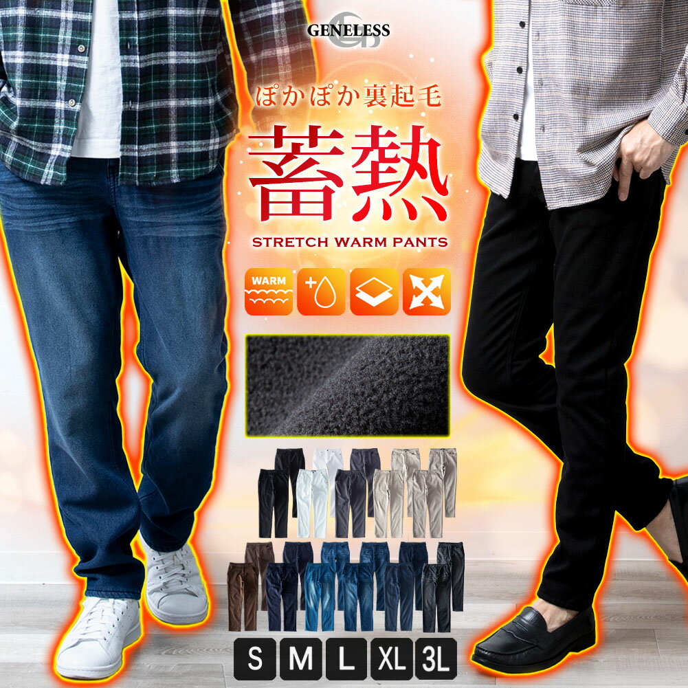 裏起毛 パンツ メンズ 秋 冬 ボトム 蓄熱 ズボン スーパーストレッチ 暖かい チノパン 暖 超伸縮 テーパード 裏フリース おしゃれ シンプル 無地 冬服 全10色 S M L LL XL 暖パンツ 大きいサイズ ジェネレス