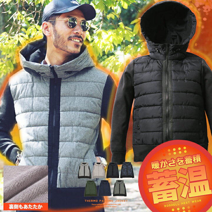 【ブラックフライデー】中綿ジャケット メンズ ブルゾン◆roshell(ロシェル) 裏起毛ジャージ切替サーモ中綿ジャケット◆エコダウンジャケット ブルゾン アウター 冬服 冬 軽量 防寒 ブランド 服 秋冬 アウトドア キャンプ ゴルフ ゴルフウェア Sサイズ XLサイズ
