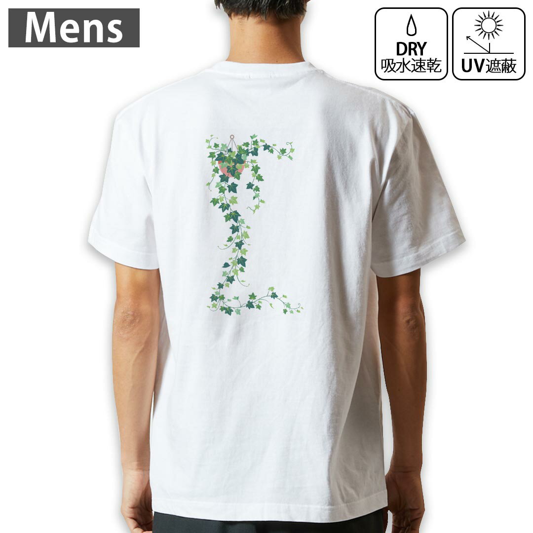メンズ ドライバックプリントTシャツ ホワイト 半袖 4.1オンス ジム トレーニング スポーツ 運動会 ドライアスレチック UVカット 紫外線遮蔽 吸水速乾 デザイン Tshirt S M L XL 2XL 3XL 4XL 5XL 6XL 015926 ツタ 植物 観葉植物