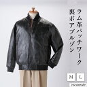 【送料無料】ボア付き ラム革 パッチワーク ブルゾン メンズ Mサイズ Lサイズ ブラック 黒 温かい アウター ジャケット ジャンパー コーデ おしゃれ おすすめ プレゼント 贈り物 贈答品 楽天スーパーSALE お歳暮 大感謝祭 ココアルデ 41149