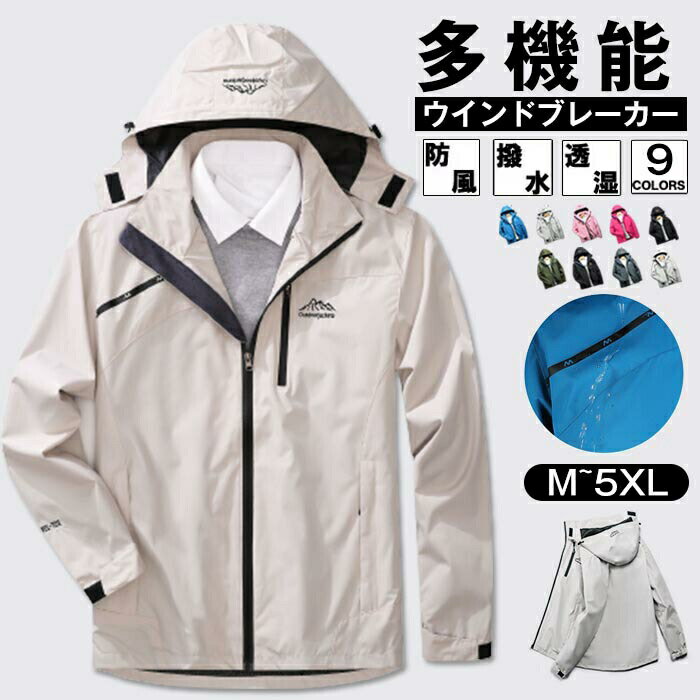 ウィンドブレーカー メンズ マウンテンパーカー 秋 アウター ウインドブレーカー レディース 秋服 大きいサイズ 男女兼用 無地 撥水耐汚 防水 防風 薄手 軽量 ジャンパー ライトジャケット ブルゾン 帽子取り アウトドア 通勤通学 旅行 登山 春物 春用