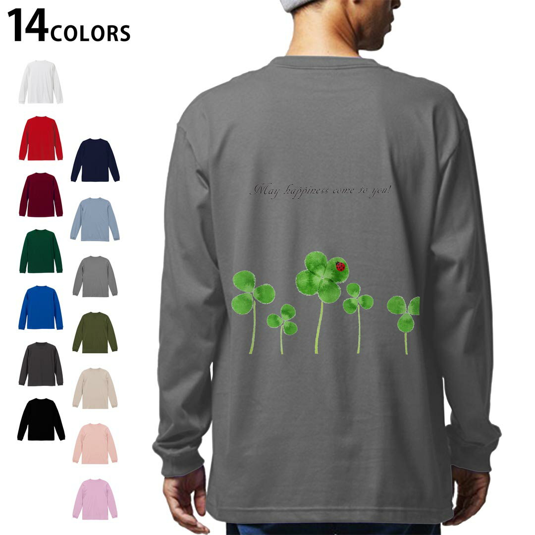 選べる14カラー バックプリント メンズ レディース ユニセックス unisex 長袖 デザイン XS S M L XL 2XL Tシャツ ロング ティーシャツ T shirt 013263 クローバー 植物 英語